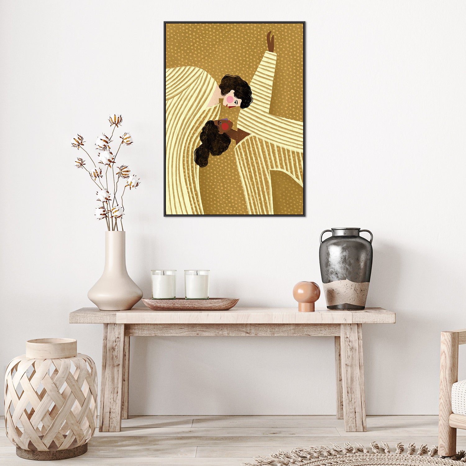 All art pieces are giclée printed on UV-resistant premium canvas to ensure lasting quality. Our gallery-quality frames, made from sustainable hardwood, provide a refined, elegant finish that perfectly complements your artwork.