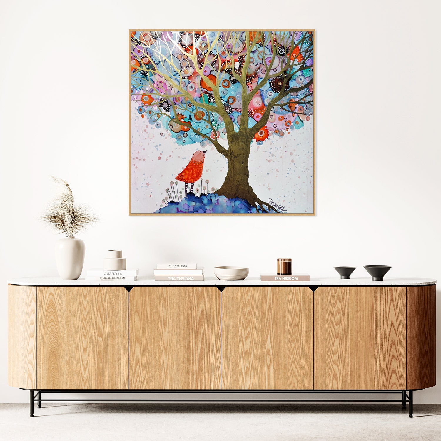 All art pieces are giclée printed on UV-resistant premium canvas to ensure lasting quality. Our gallery-quality frames, made from sustainable hardwood, provide a refined, elegant finish that perfectly complements your artwork.