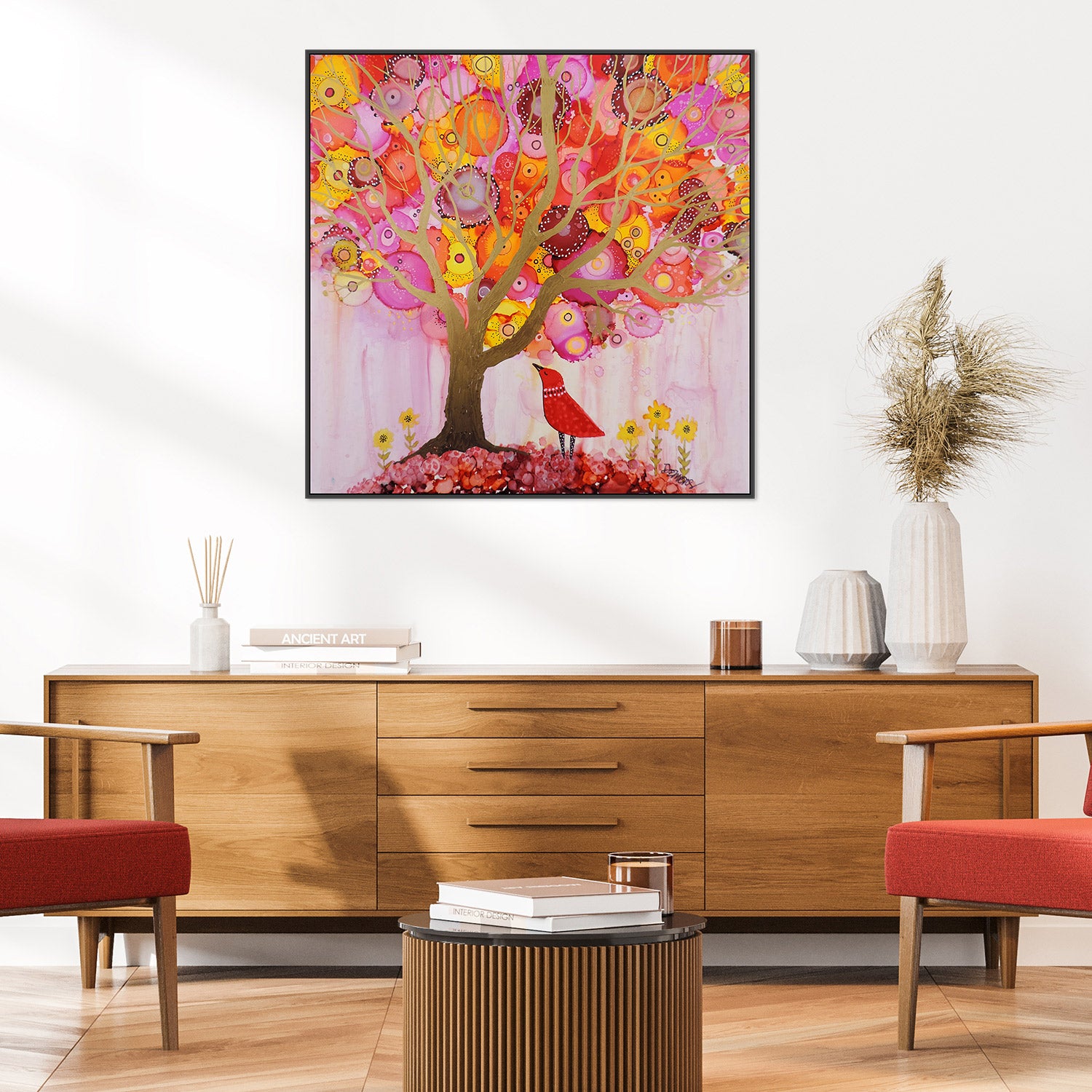 All art pieces are giclée printed on UV-resistant premium canvas to ensure lasting quality. Our gallery-quality frames, made from sustainable hardwood, provide a refined, elegant finish that perfectly complements your artwork.
