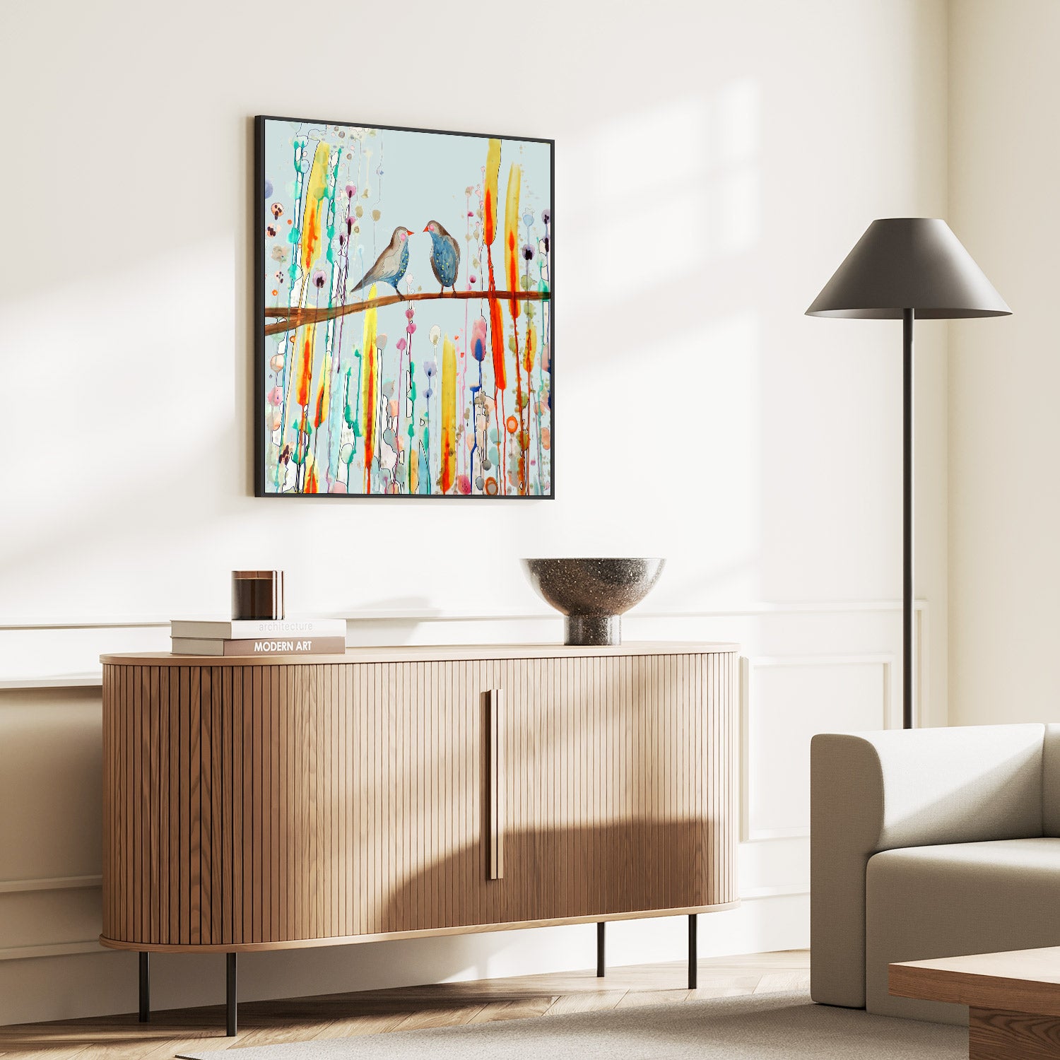 All art pieces are giclée printed on UV-resistant premium canvas to ensure lasting quality. Our gallery-quality frames, made from sustainable hardwood, provide a refined, elegant finish that perfectly complements your artwork.