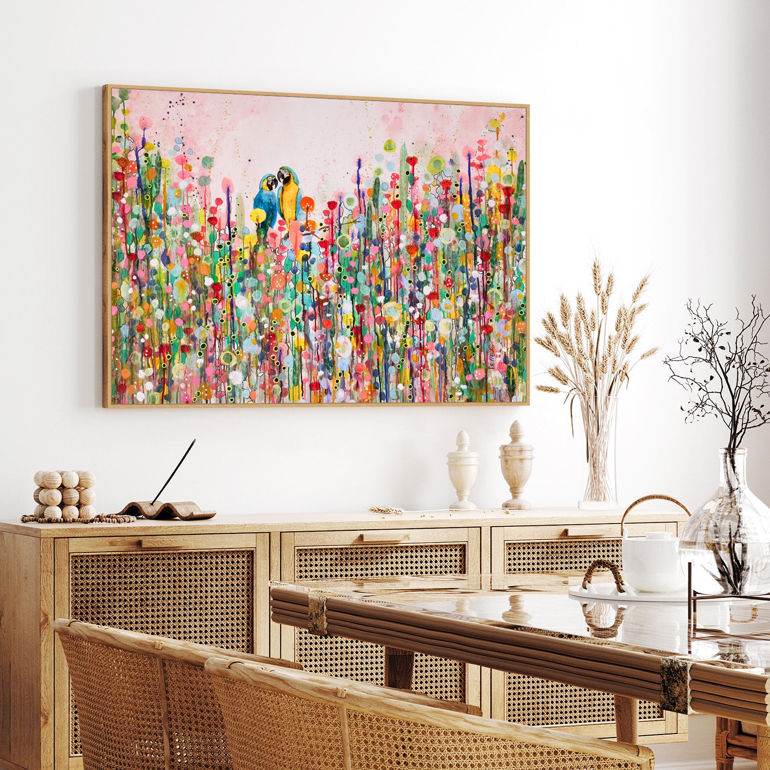 All art pieces are giclée printed on UV-resistant premium canvas to ensure lasting quality. Our gallery-quality frames, made from sustainable hardwood, provide a refined, elegant finish that perfectly complements your artwork.
