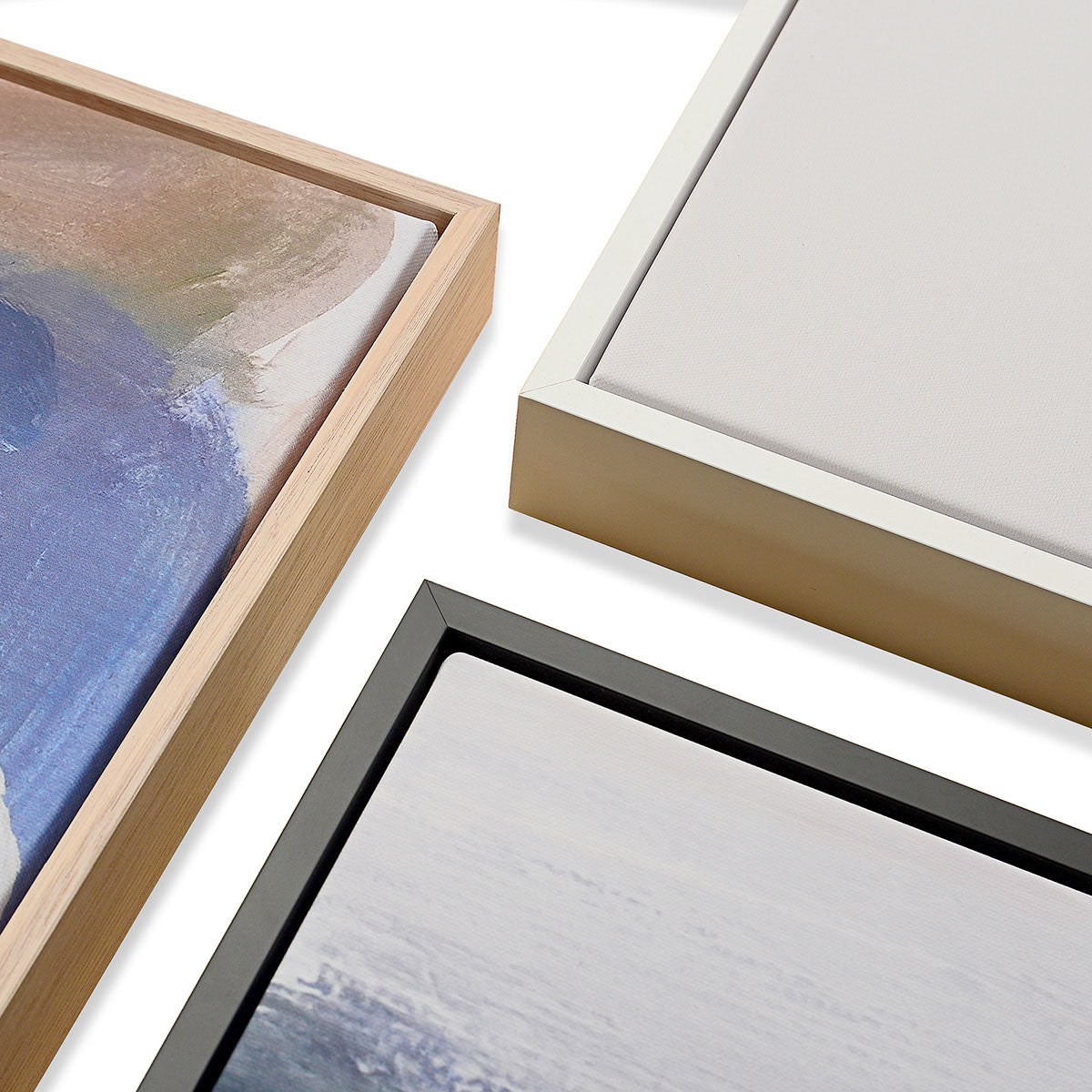 Our box frames are available in White, Black and Oak, so you can be sure to find a great match for your home. Our White, Black, and Oak frames are endlessly versatile, and work well with all interior styles and wall colours.